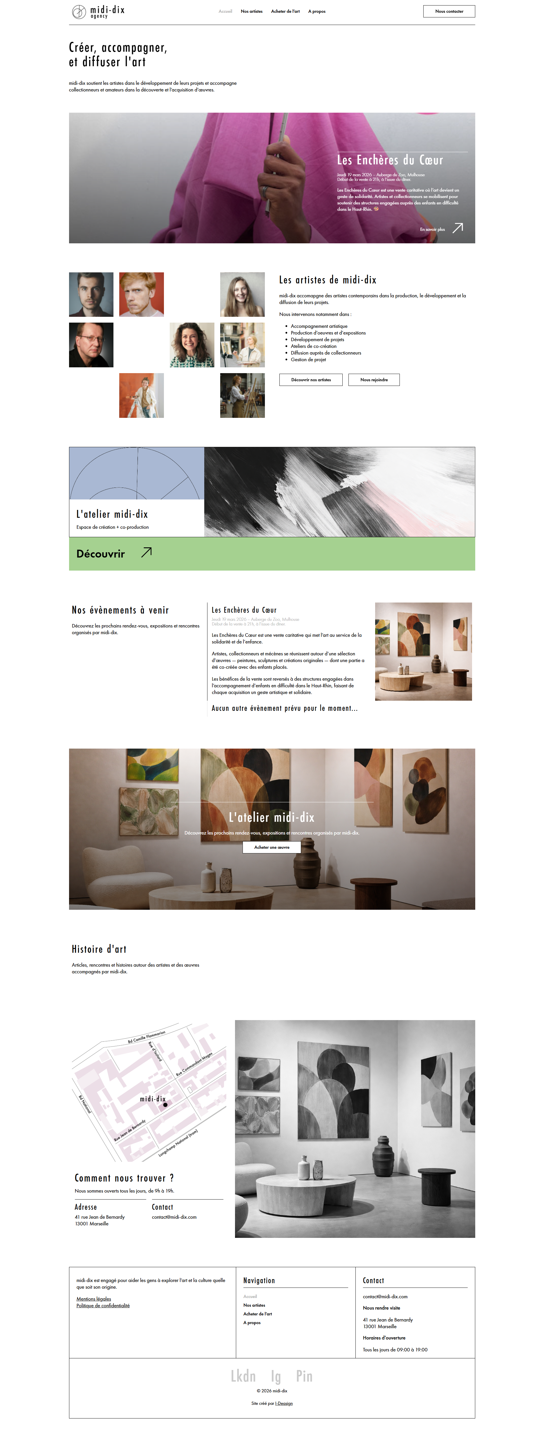 Création de la première version du site de l’atelier Midi-dix sur Marseille. Un atelier qui permet de mettre en avant l’art, accompagner les artistes dans leur création et vente de leurs œuvres mais également les acheteurs et collectionneurs.